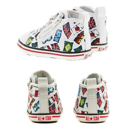 ホワイトアッパーにカラフルな国旗が映えるキュートなベビーオールスター のアレンジモデル。